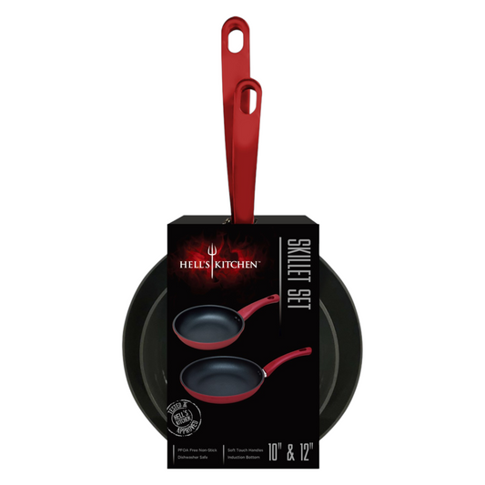 Hell's Kitchen 10-Inch & 12-Inch Ceramic Fry Pan Set - Red