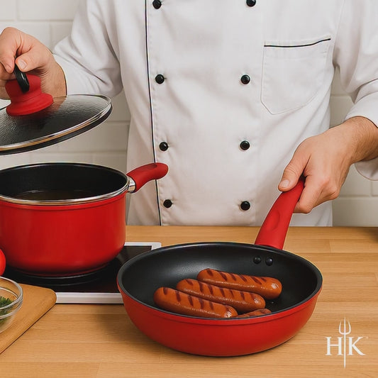 Hell’s Kitchen 1.5-Quart Saucepan and 10-Inch Skillet Set - Red