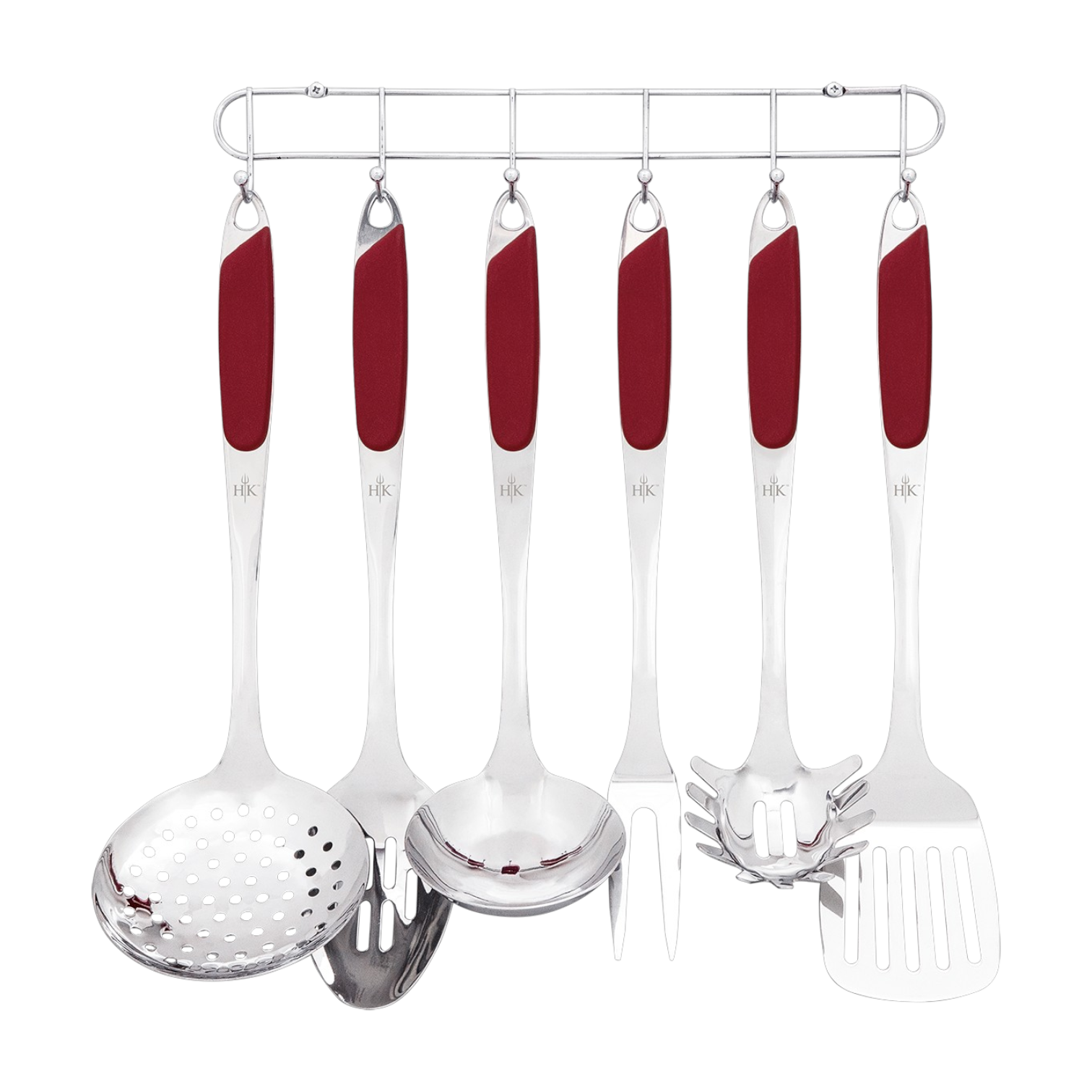 Hell's Kitchen 6-Piece Stainless Kitchen Utensil Set - Red