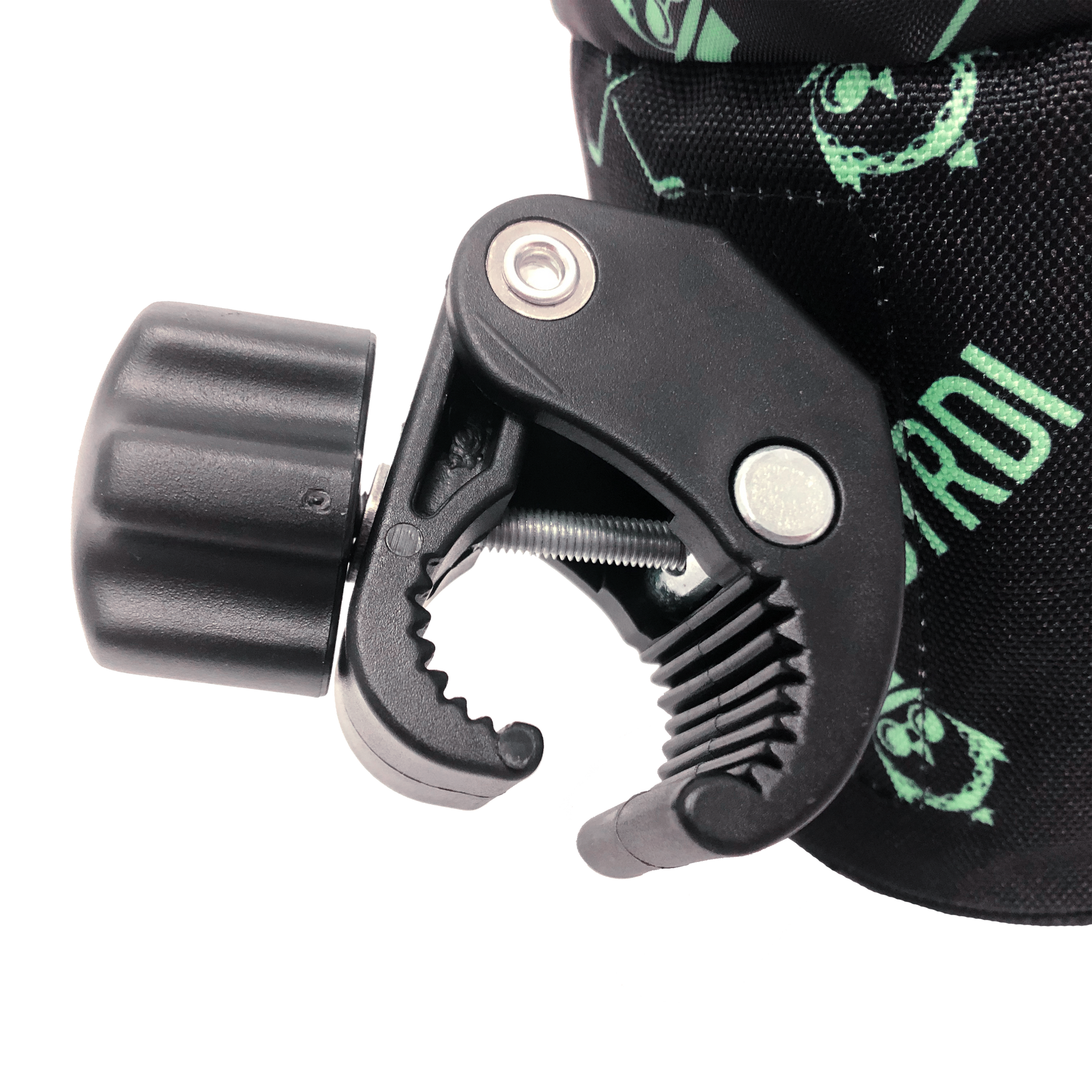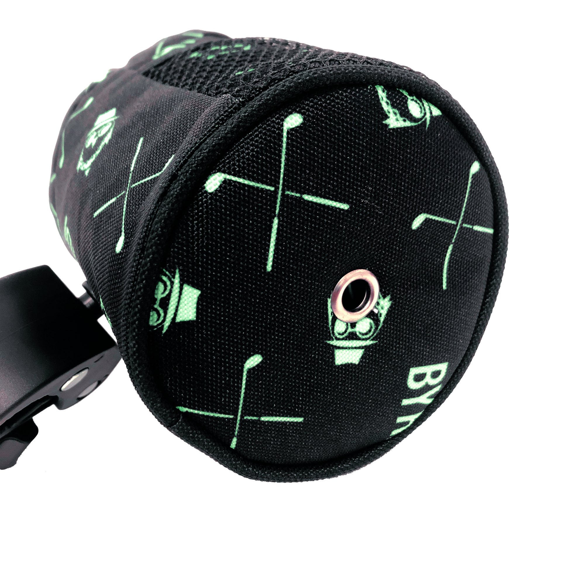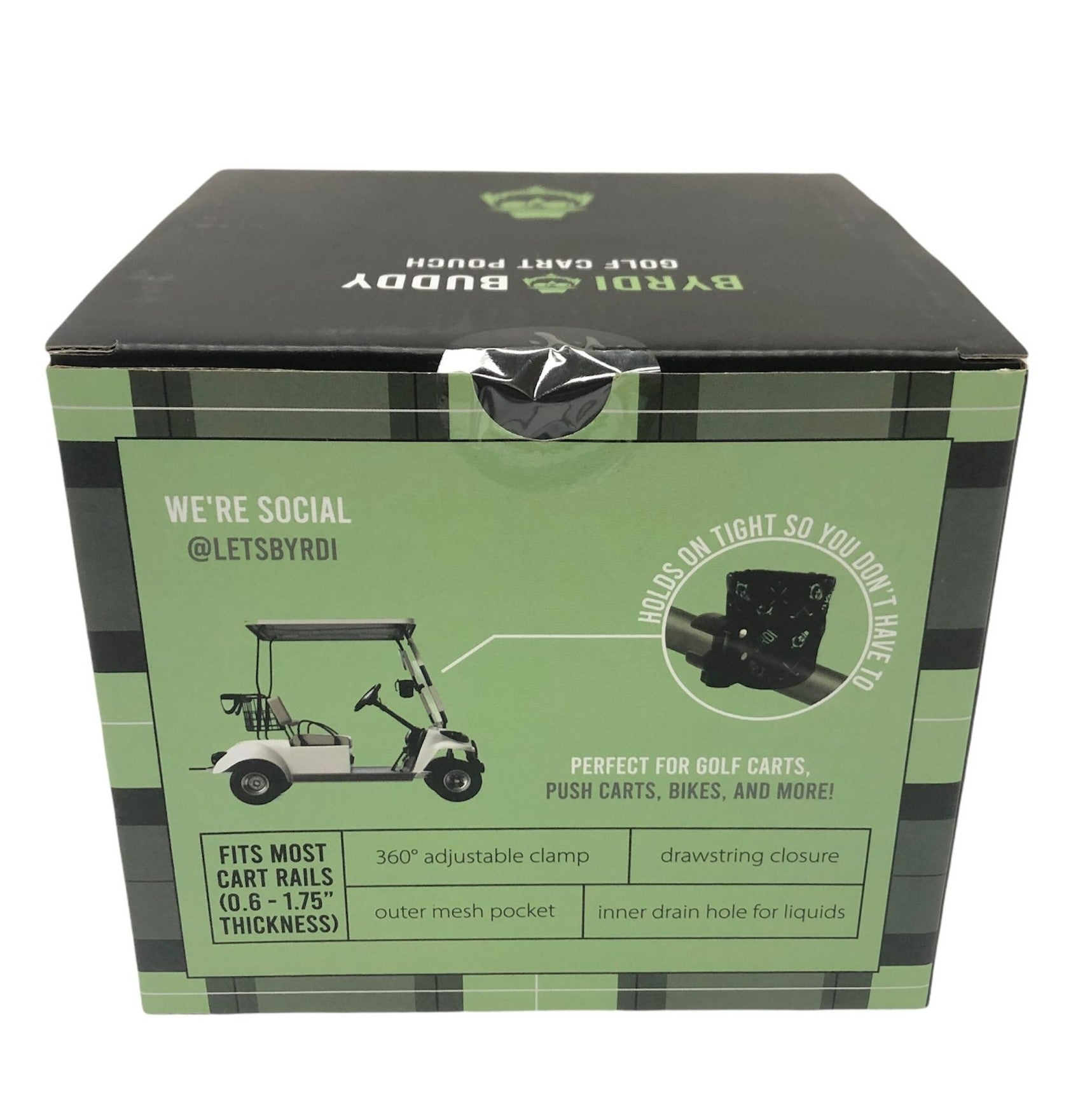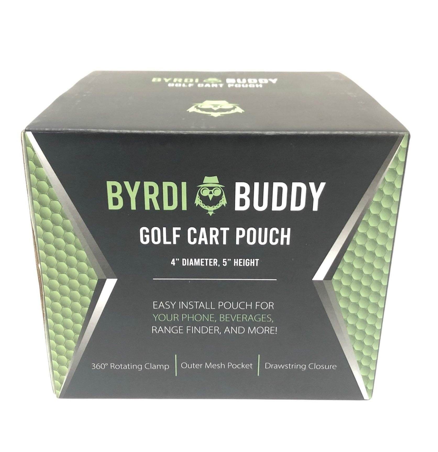 Stay organized on the course with the BYRDI Buddy Golf Cart Pouch - the perfect holder for your range finder, beverage, golf balls, tees, and more. Designed to fit most golf cart or push cart rails (0.6"-1.75" thick), this handy pouch features an innovative 360° adjustable clamp that attaches securely at any angle. A drawstring closure keeps items snug, while the outer mesh pocket holds smaller accessories like tees, phones, or divot tools. An inner drain hole prevents liquid buildup, making this the ultimate golfing companion for convenience and organization.