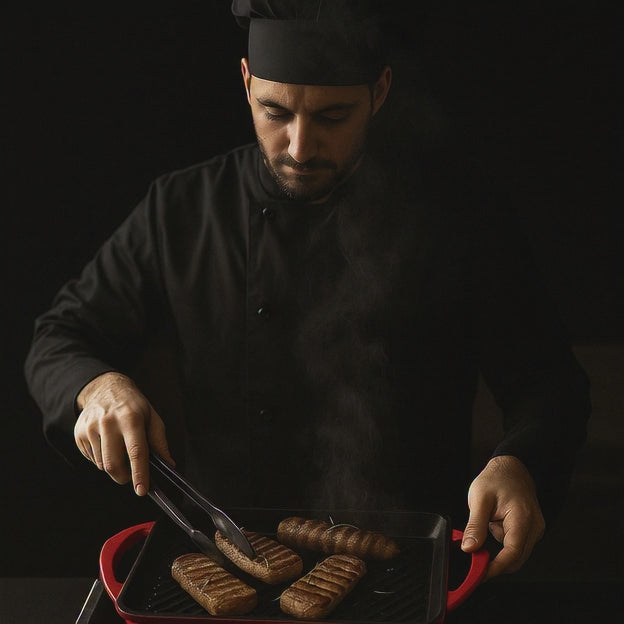 Bring the heat of Hell’s Kitchen into your home with the Official Hell’s Kitchen Cast Iron Grill Pan - trusted by America’s most-watched TV cooking show. Built for serious cooking, this durable cast iron pan delivers even heat distribution and excellent heat retention, perfect for grilling, searing, and browning your favorite meats and vegetables. The raised griddle ridges create signature grill marks while enhancing flavor and texture. Pre-seasoned for a naturally nonstick surface, it’s oven-safe up to 500°F and works great on both stovetop and oven.