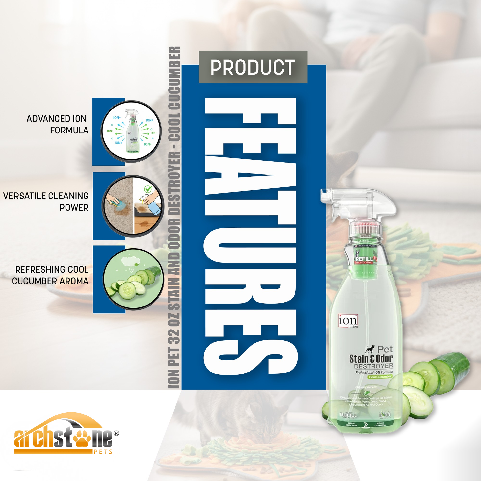 ION Pet 32 Oz Stain and Odor Destroyer - Cool Cucumber