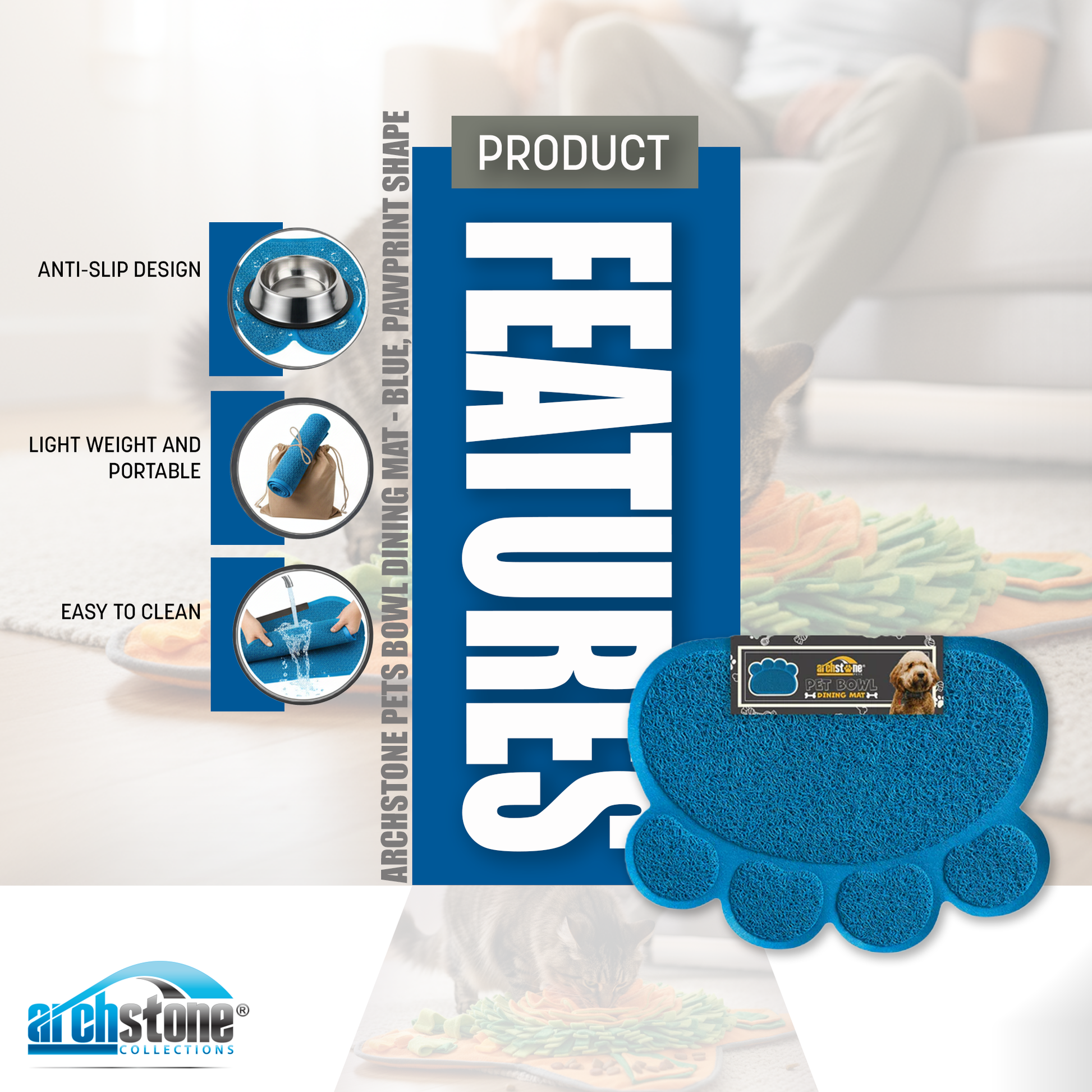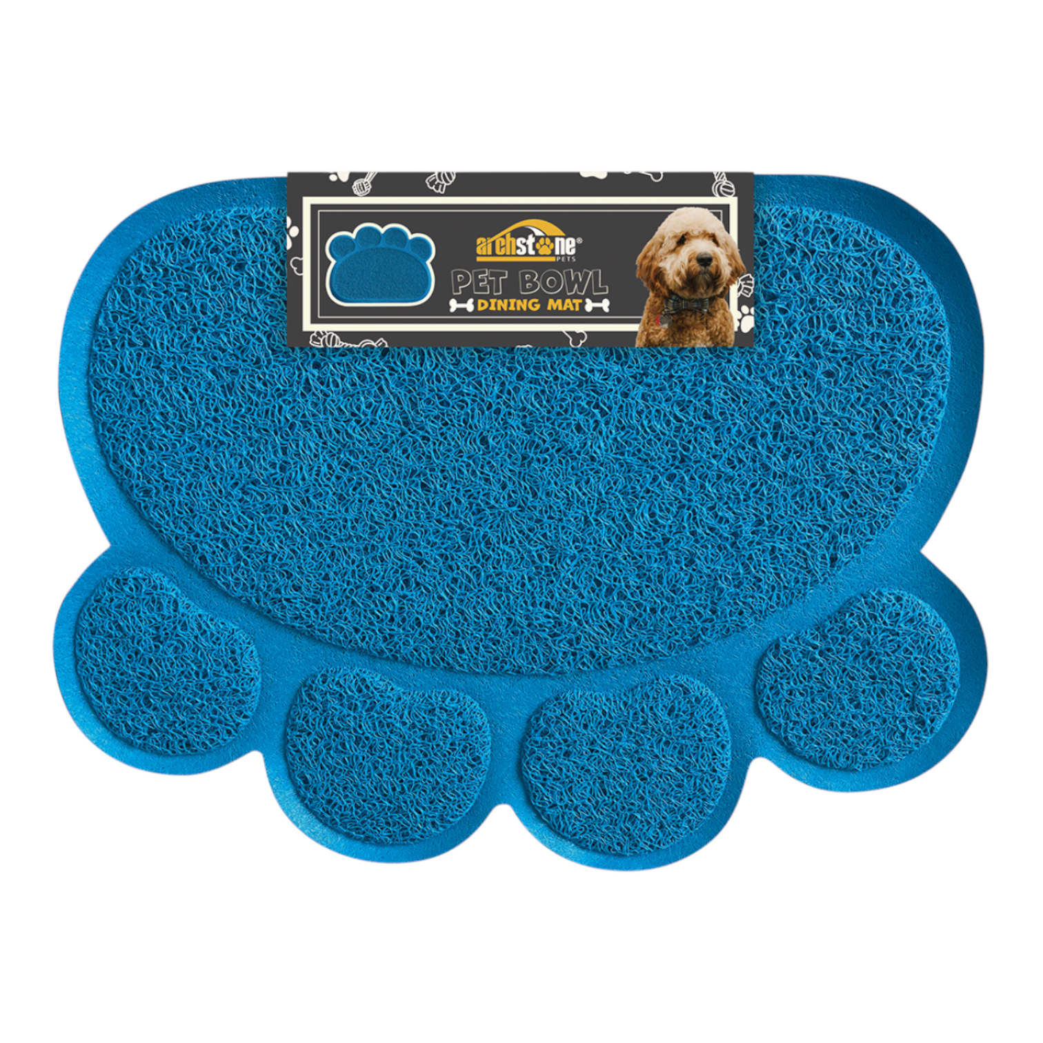 Archstone Pets Bowl Dining Mat - Blue, Pawprint Shape